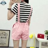 Fresh and vitaminized, that's what best describes the pink women's dungaree shorts. Its straight shorts fit your shape and leave room for your femininity, with an open back that will look great with a white crop-top or a sailor suit. Its gathers and its back give this pair of shorts the opportunity to sublimate your legs for an assured look without concession.